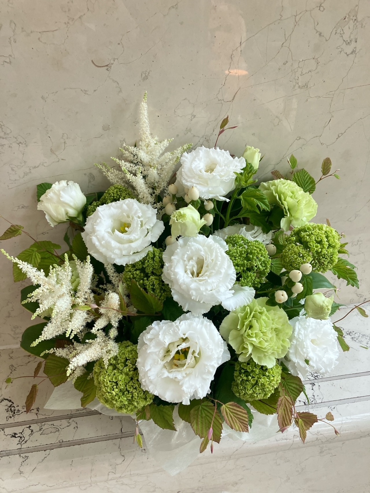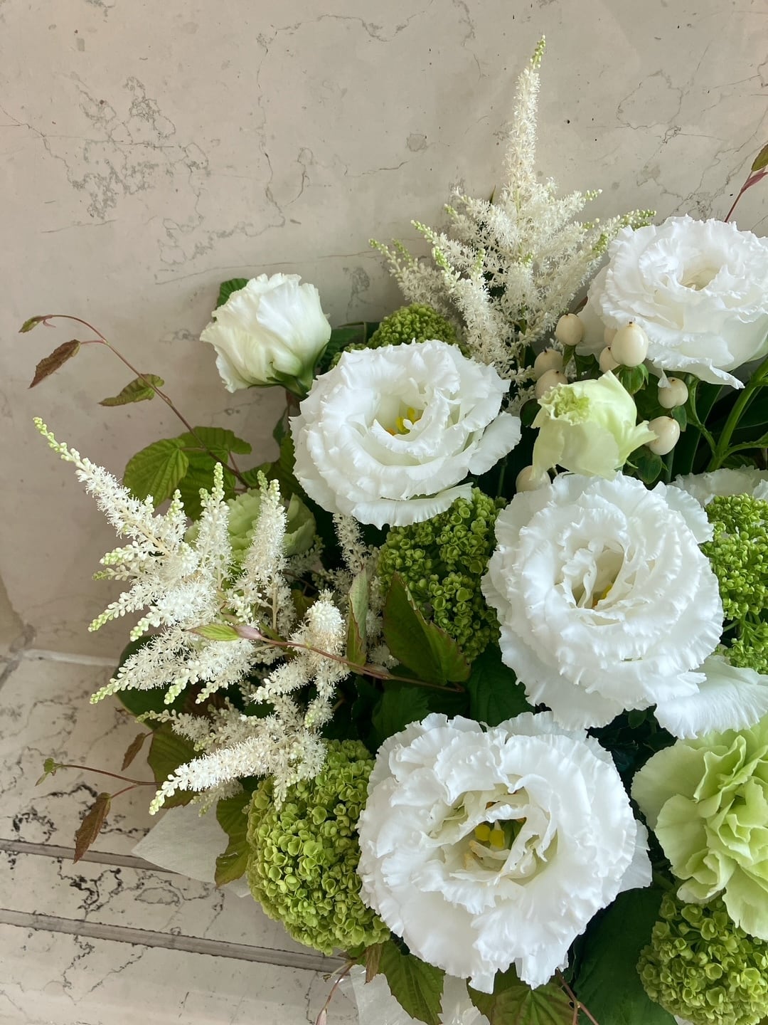 白いお花をメインにグリーンをお入れしてお作りしました。