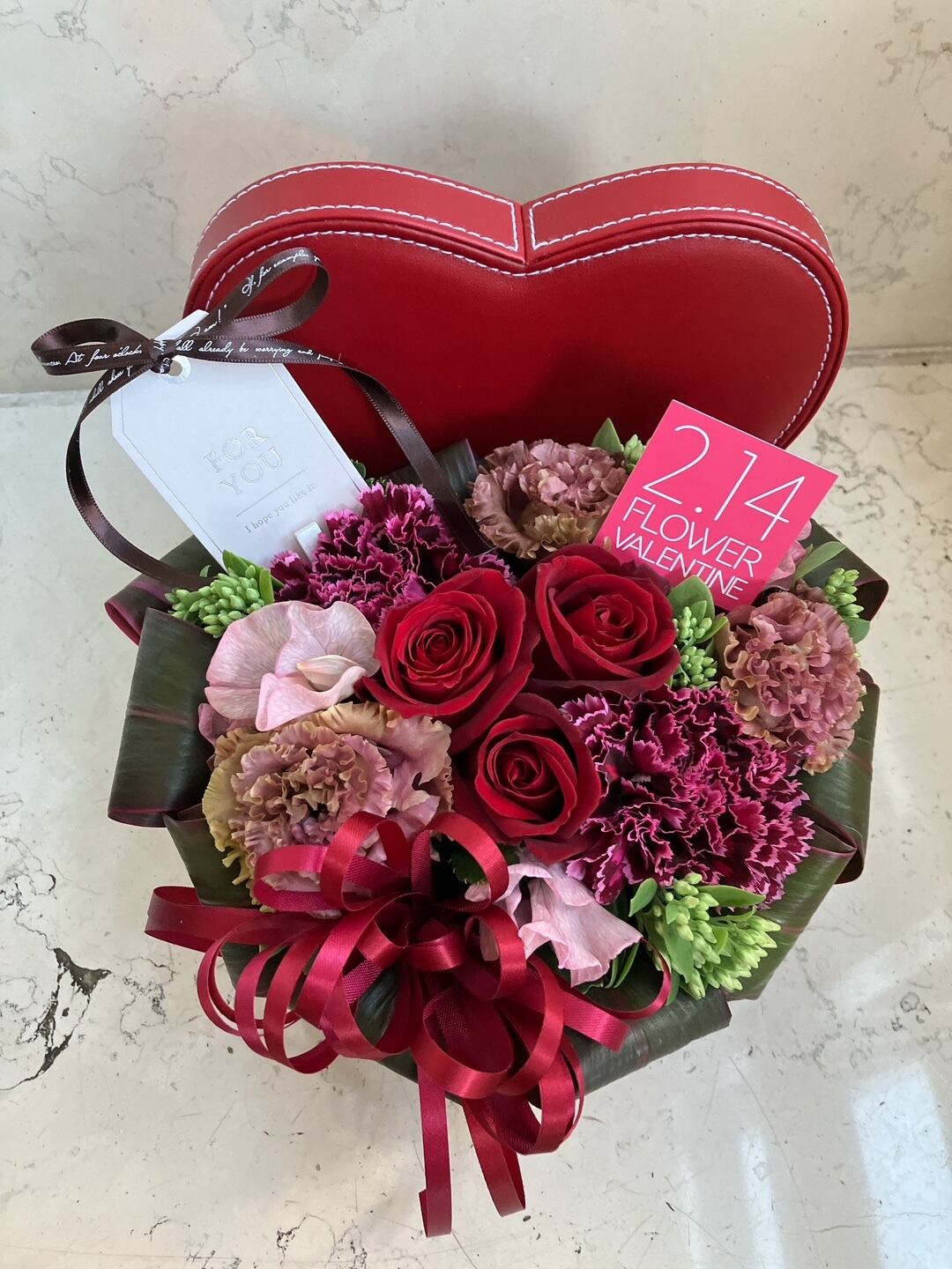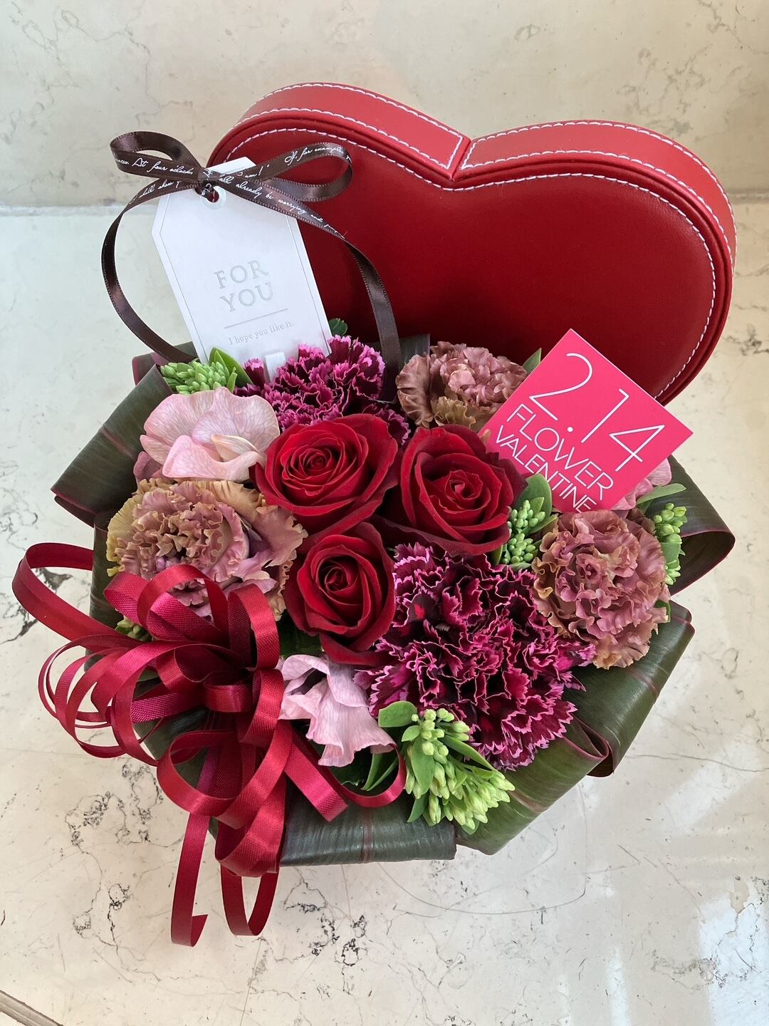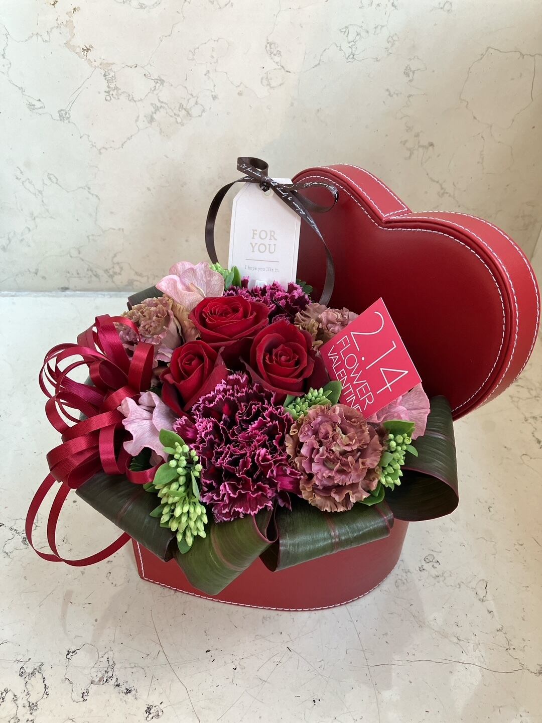 バレンタイン アレンジメント「ハートBOX~レッド」