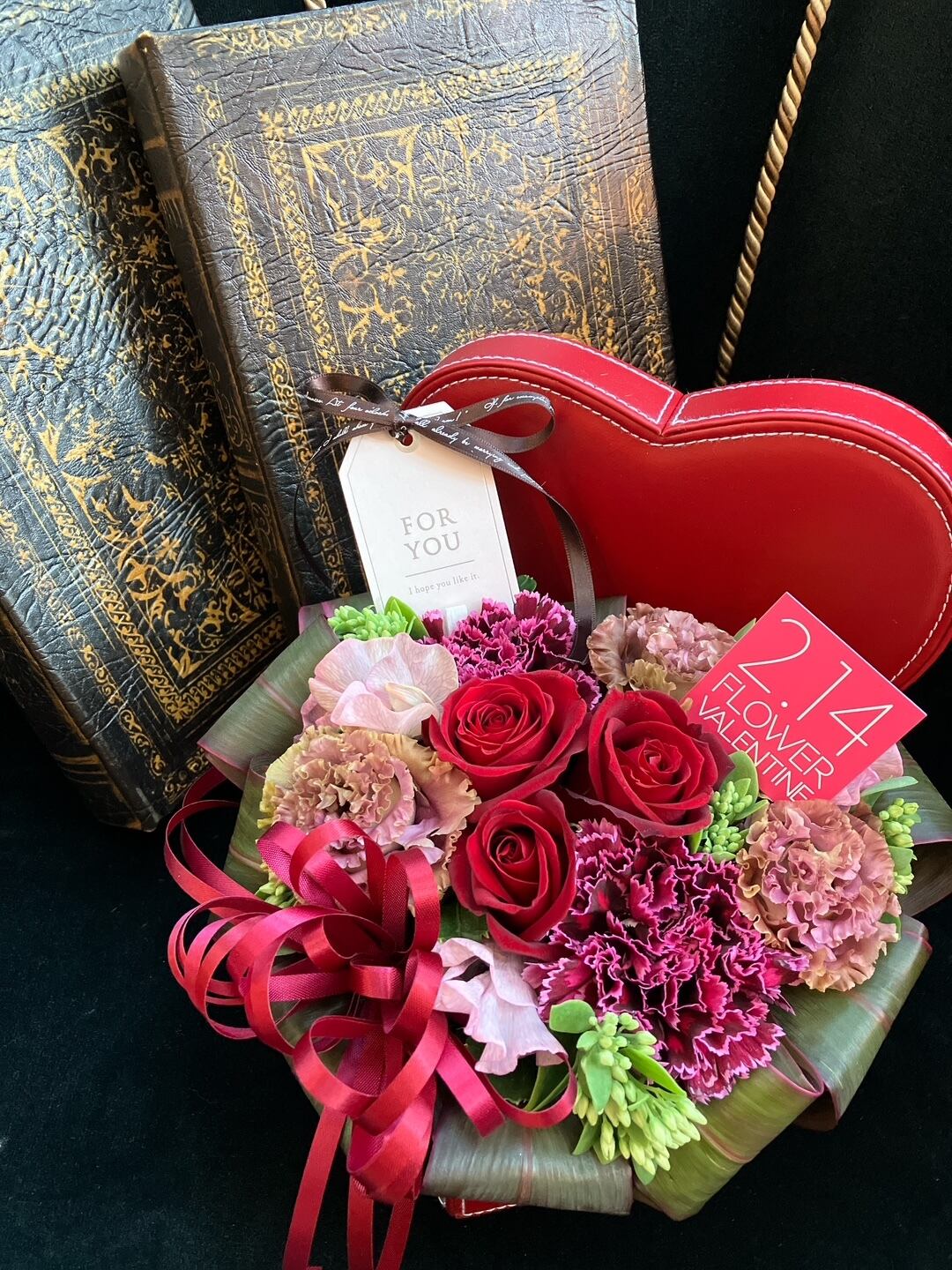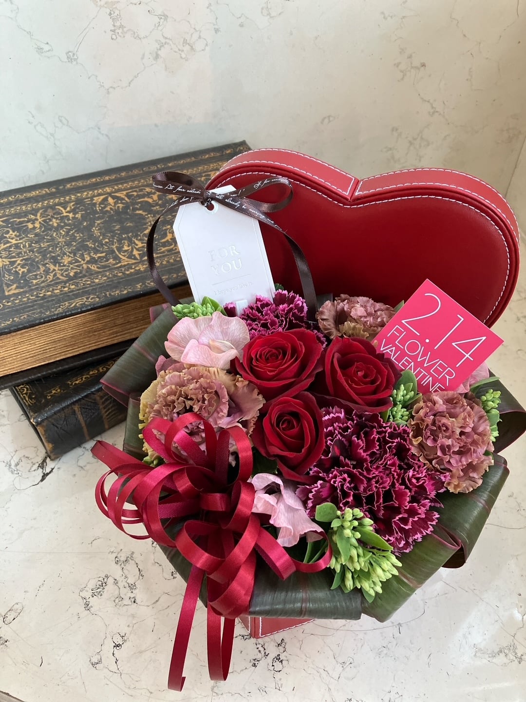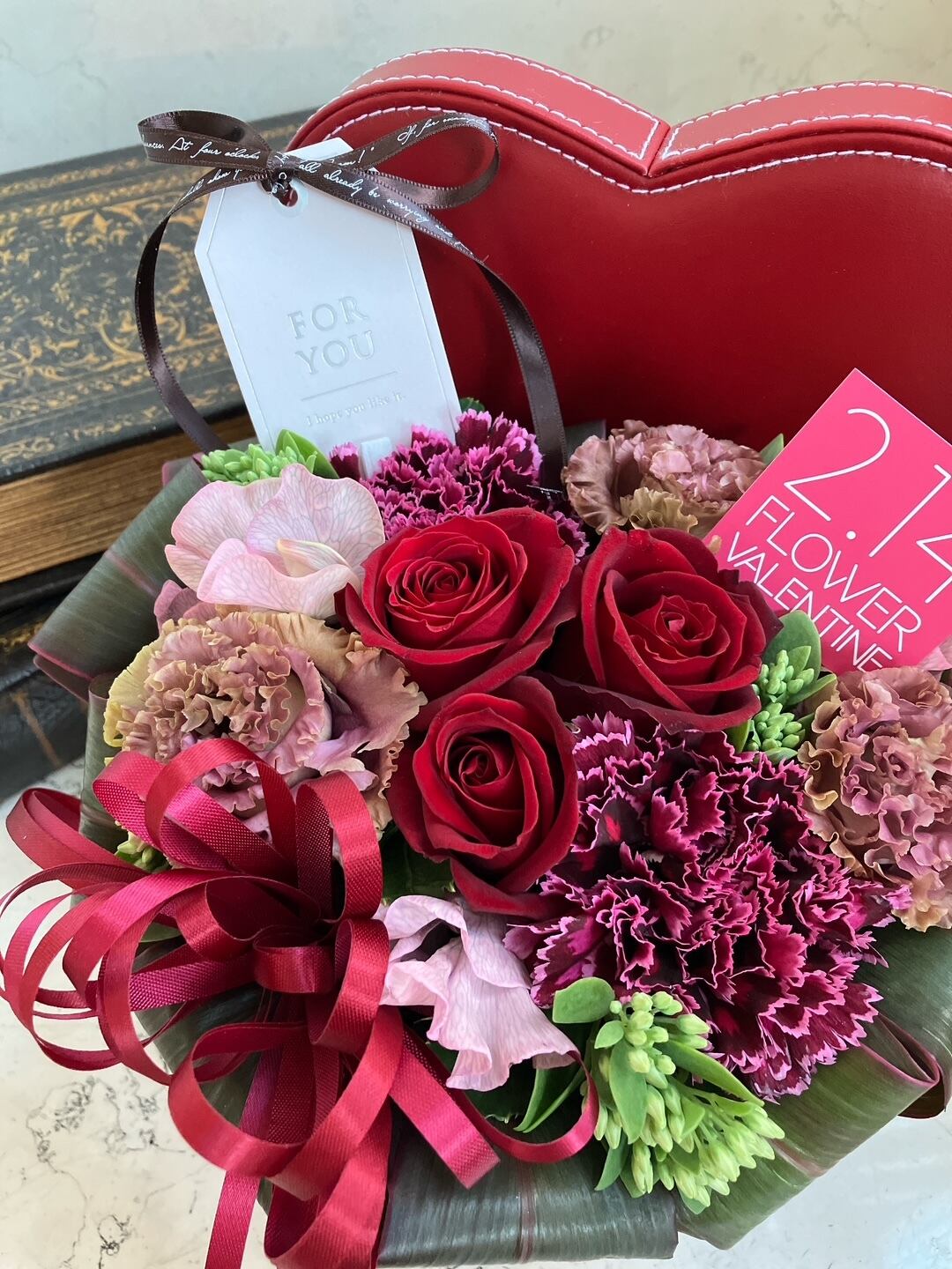 バレンタイン アレンジメント「ハートBOX~レッド」