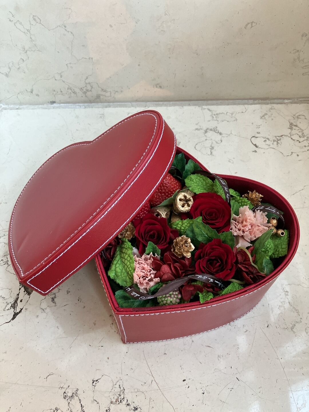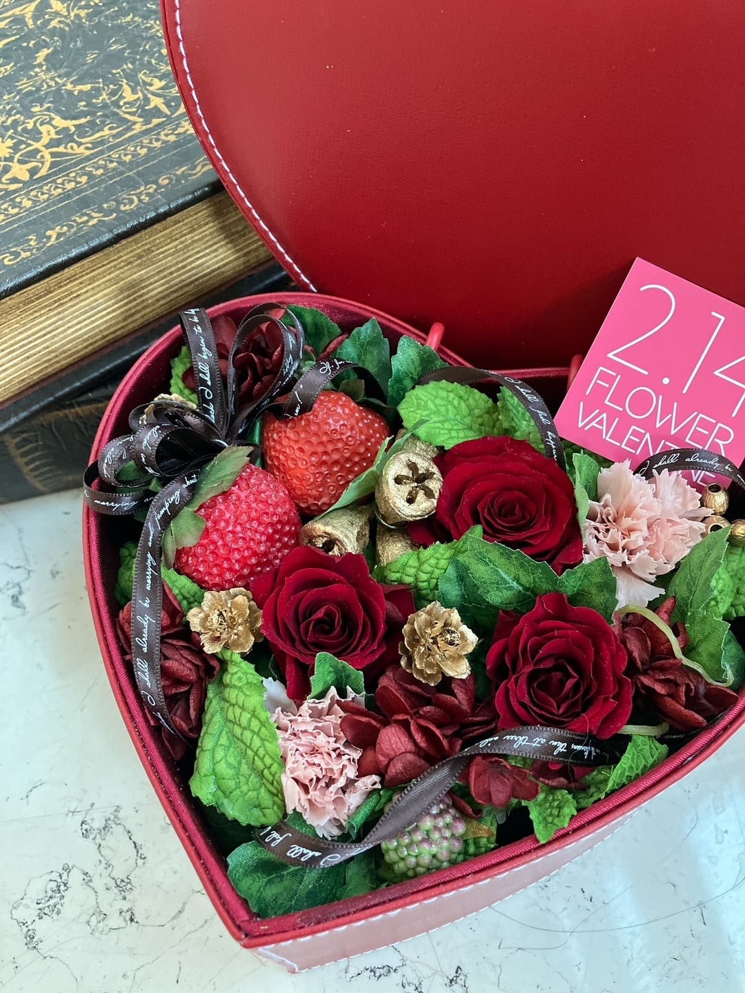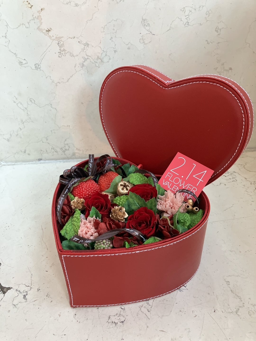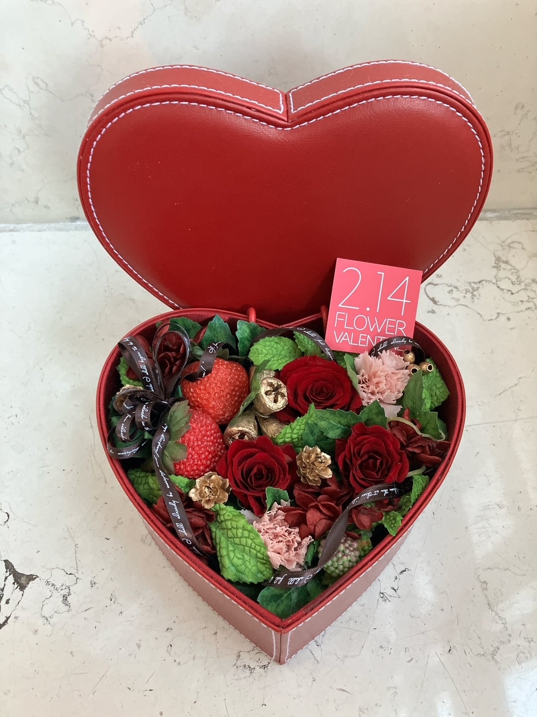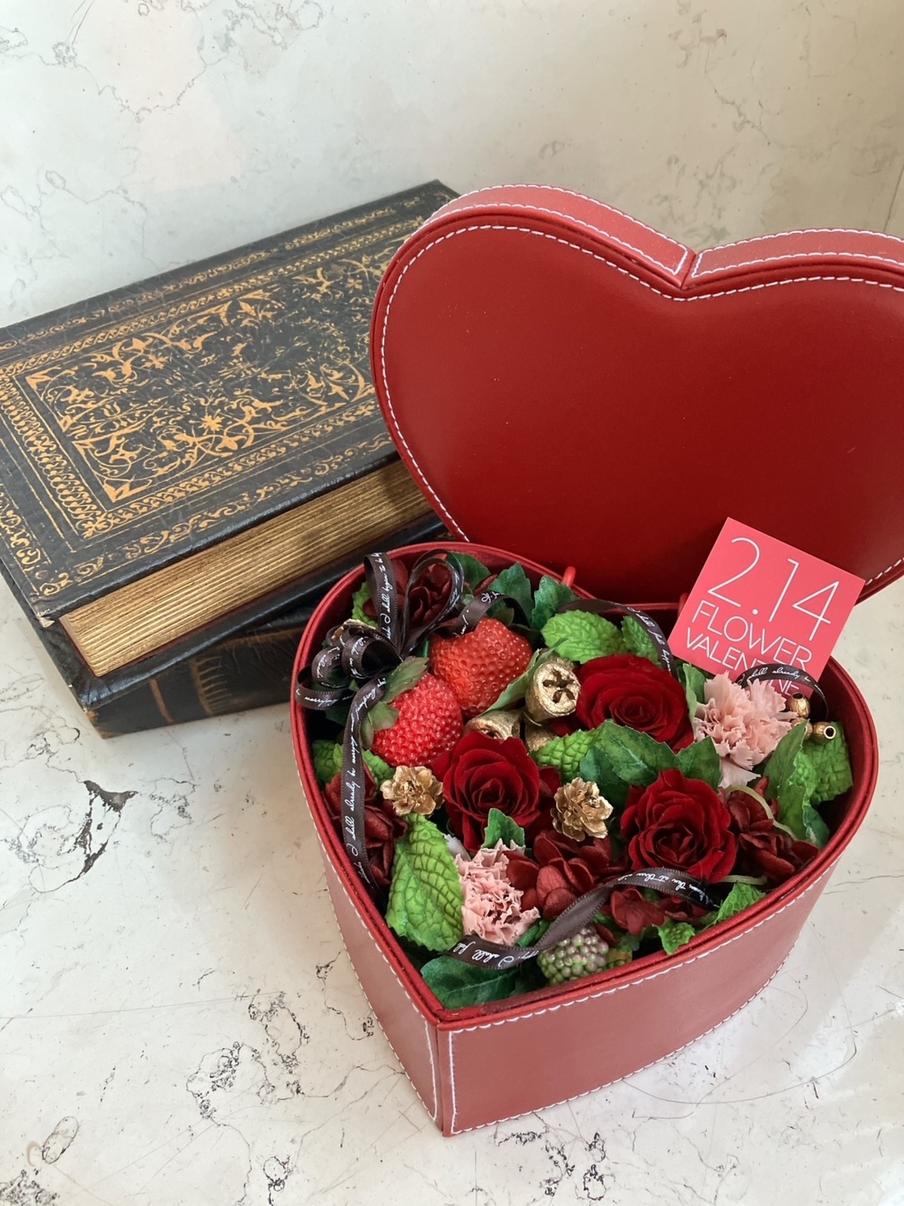 バレンタインのプレゼントにおすすめのハートボックスアレンジです♡