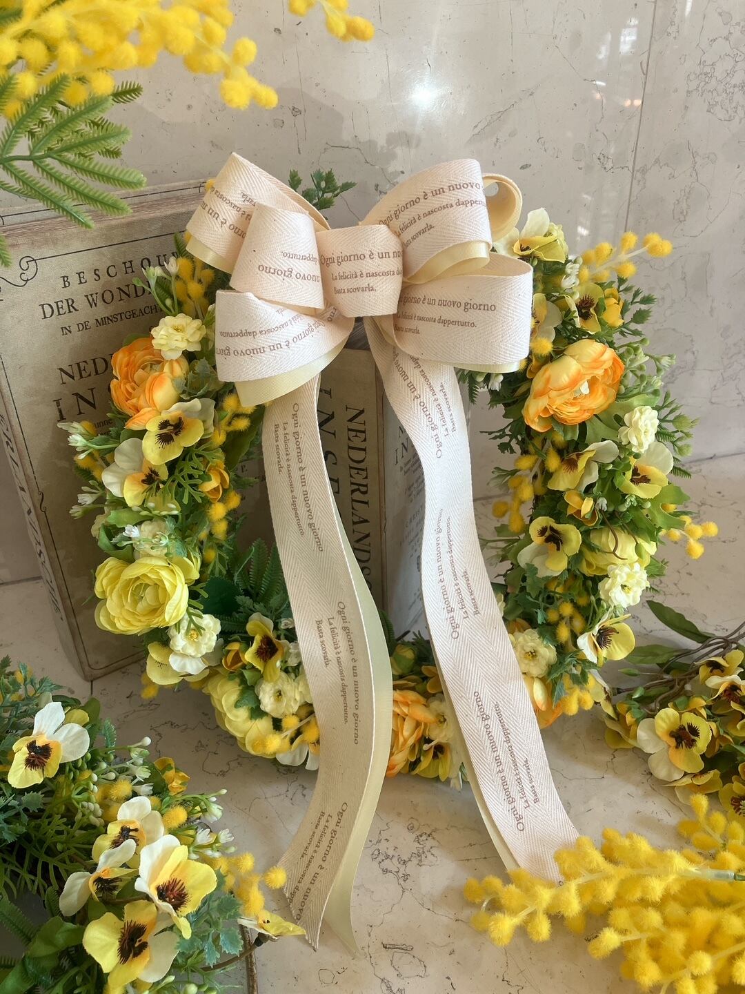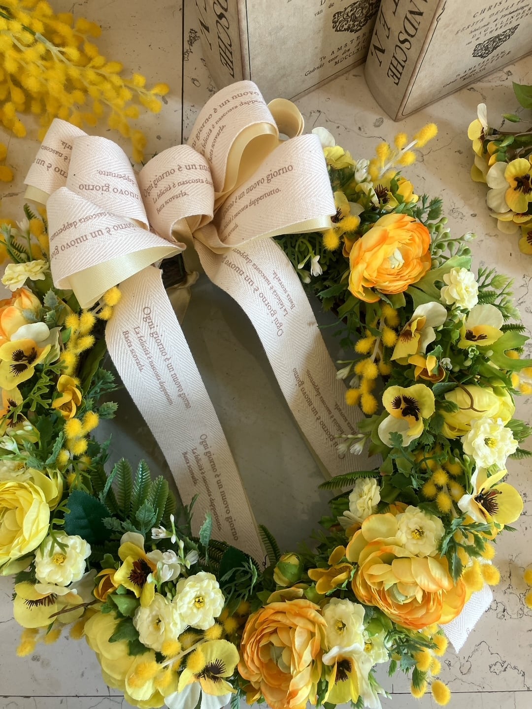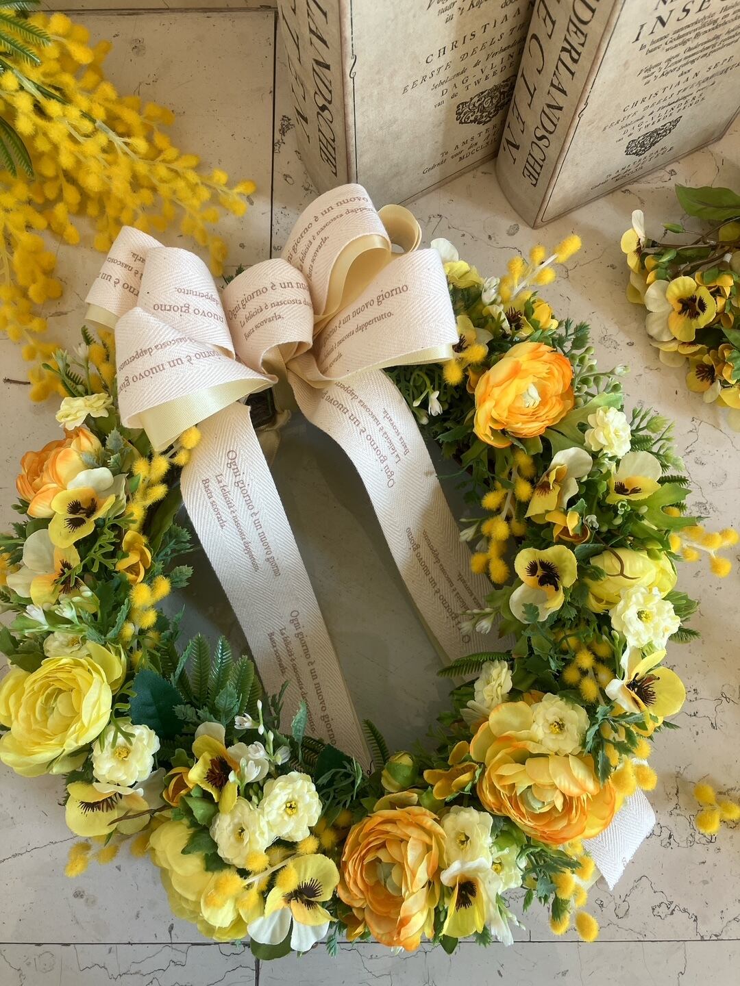 アーティフィシャルフラワー リース「ミモザ」