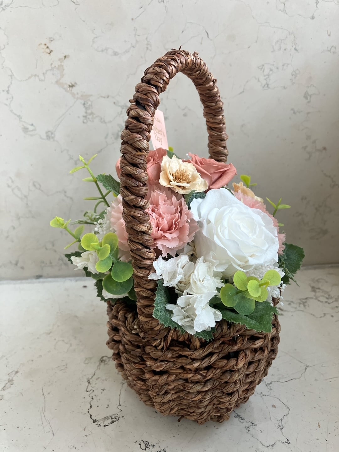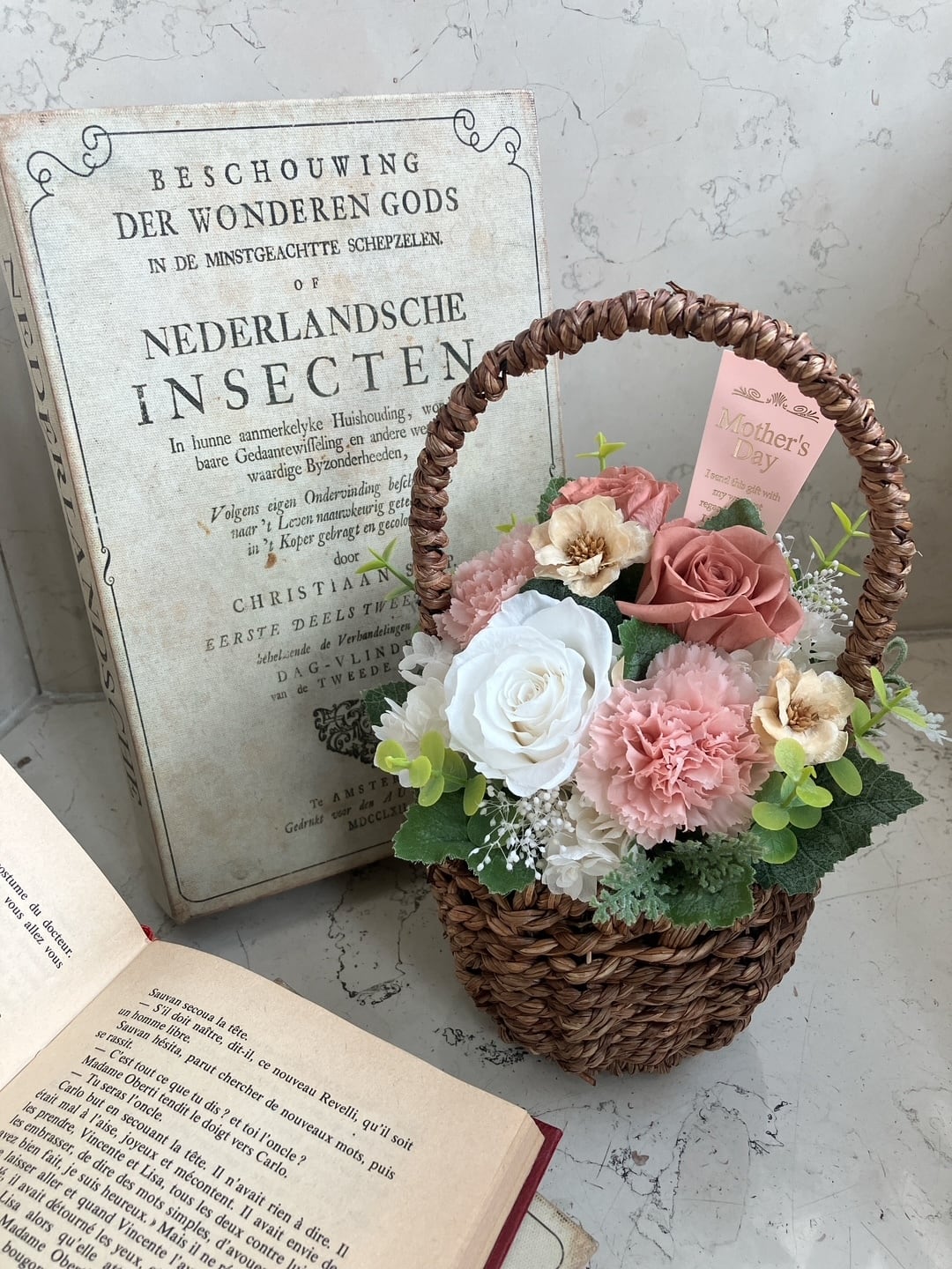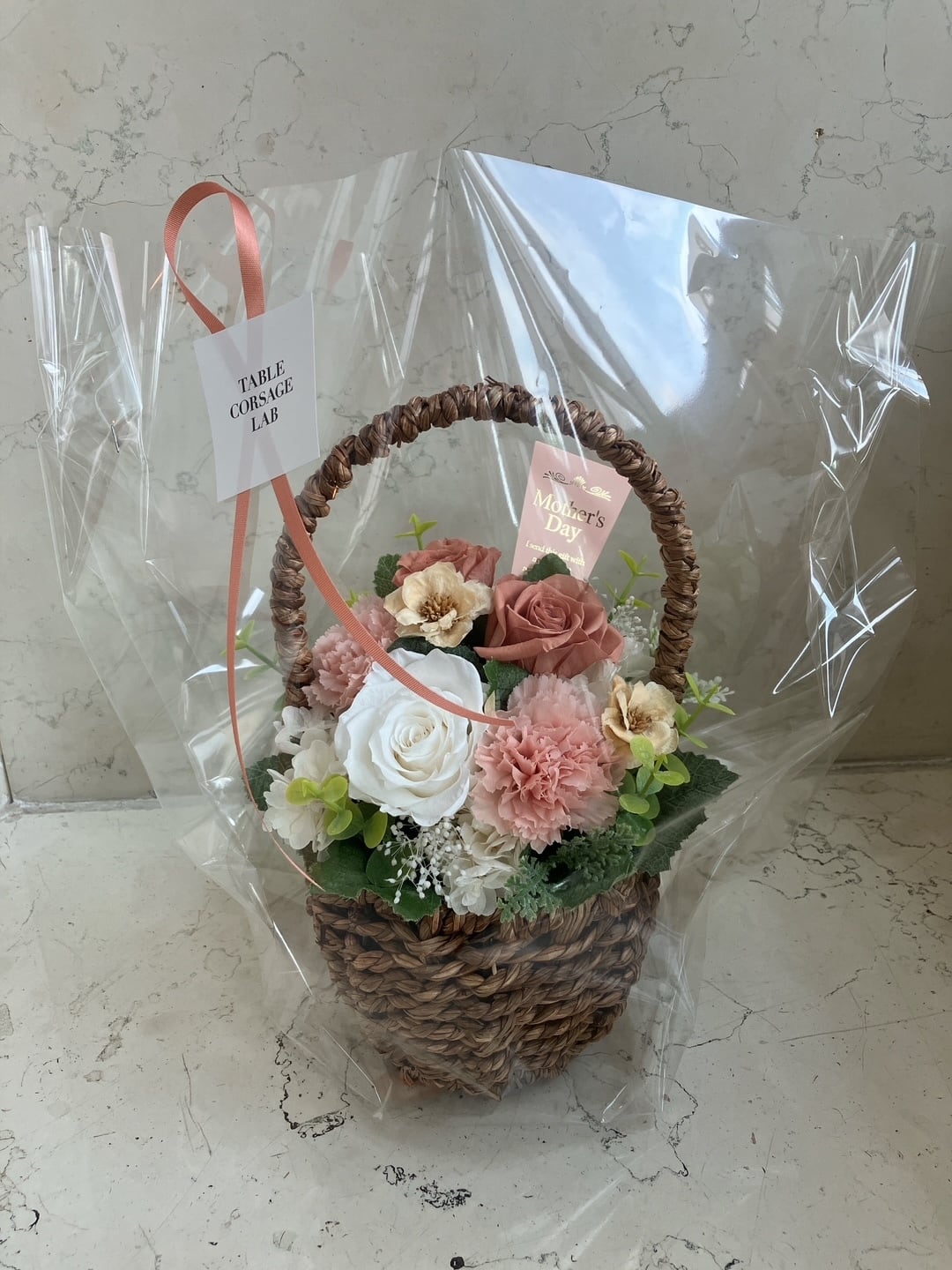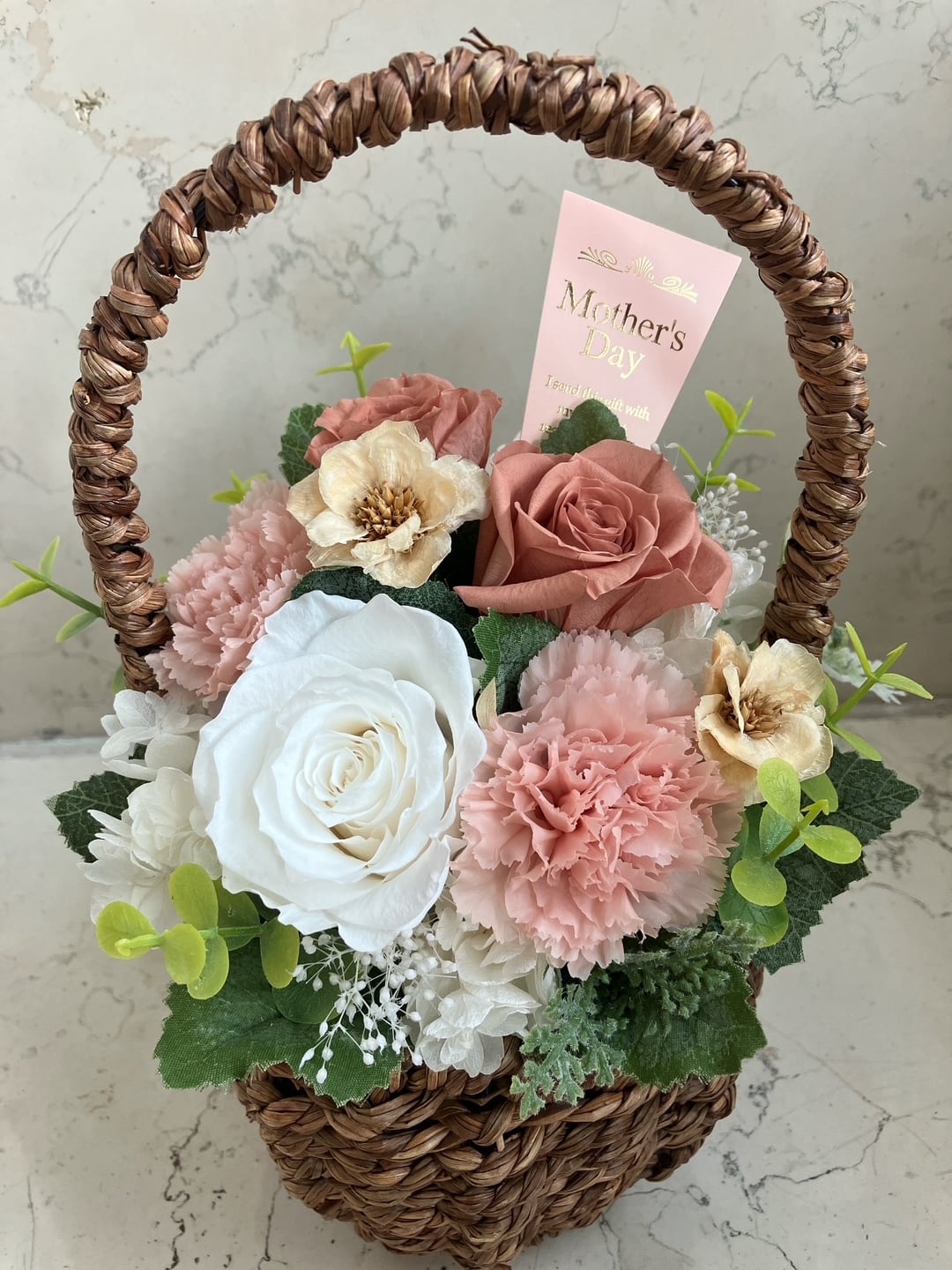 Mother's Day Gift プリザーブドフラワー Basket arrange「White×Beige」