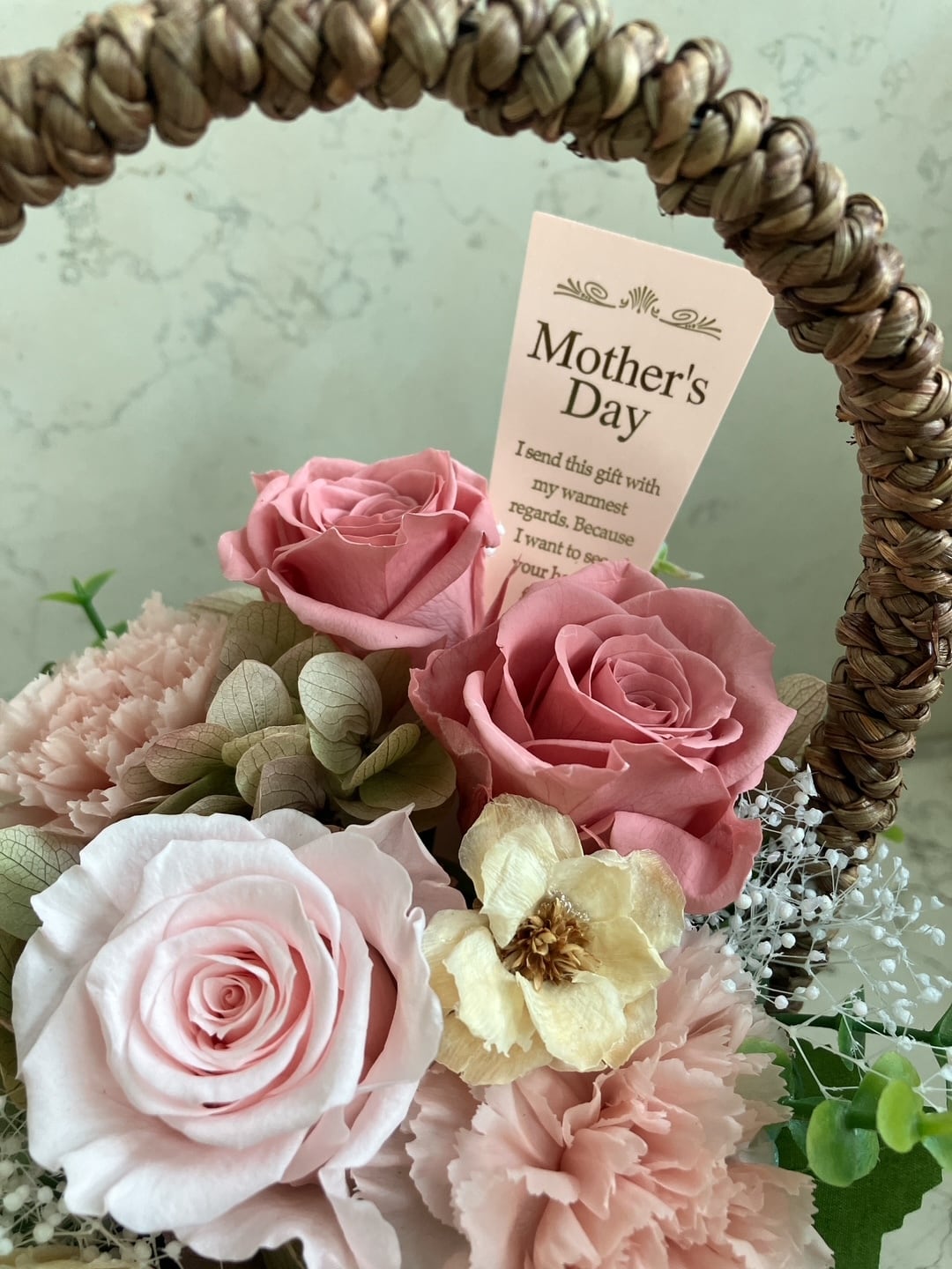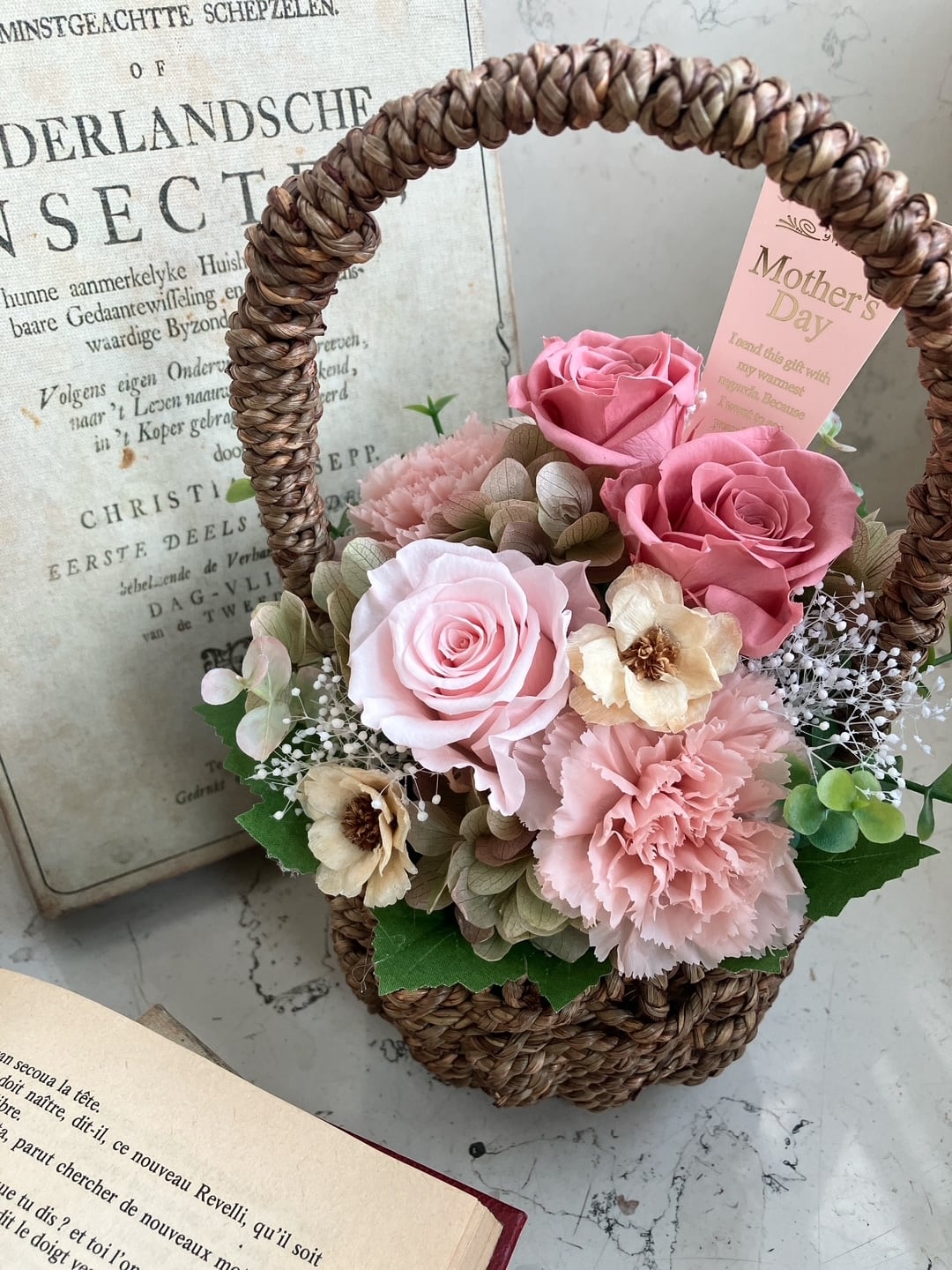 Mother's Day Gift プリザーブドフラワー Basket arrange「Pink」