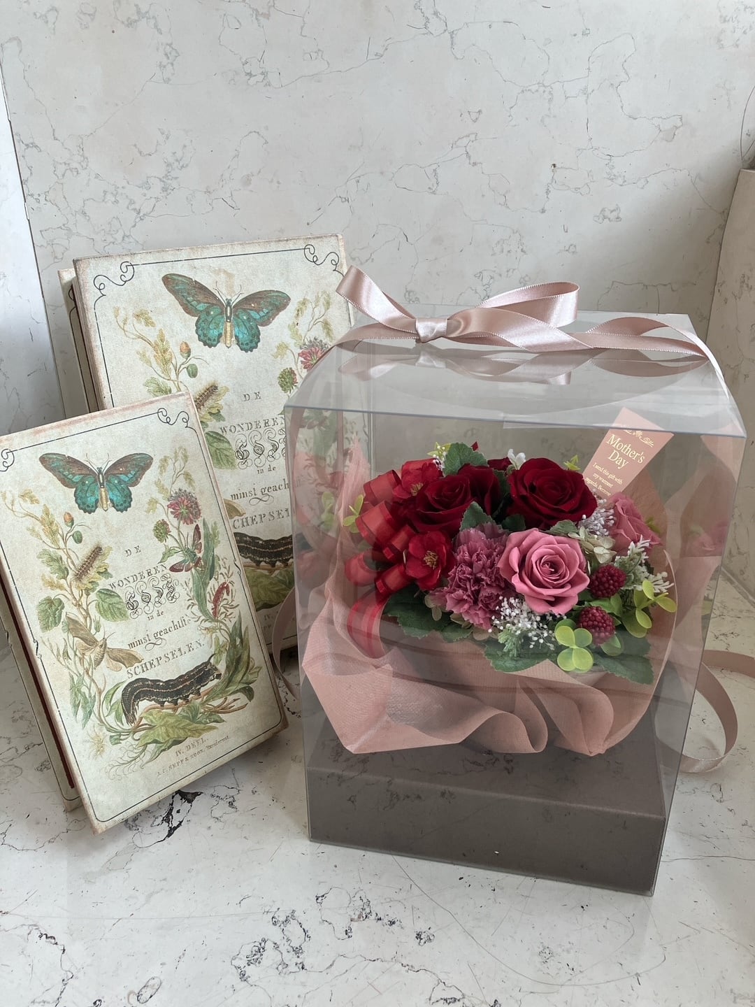 ※生花ではなくプリザーブドフラワーでアレンジしております。