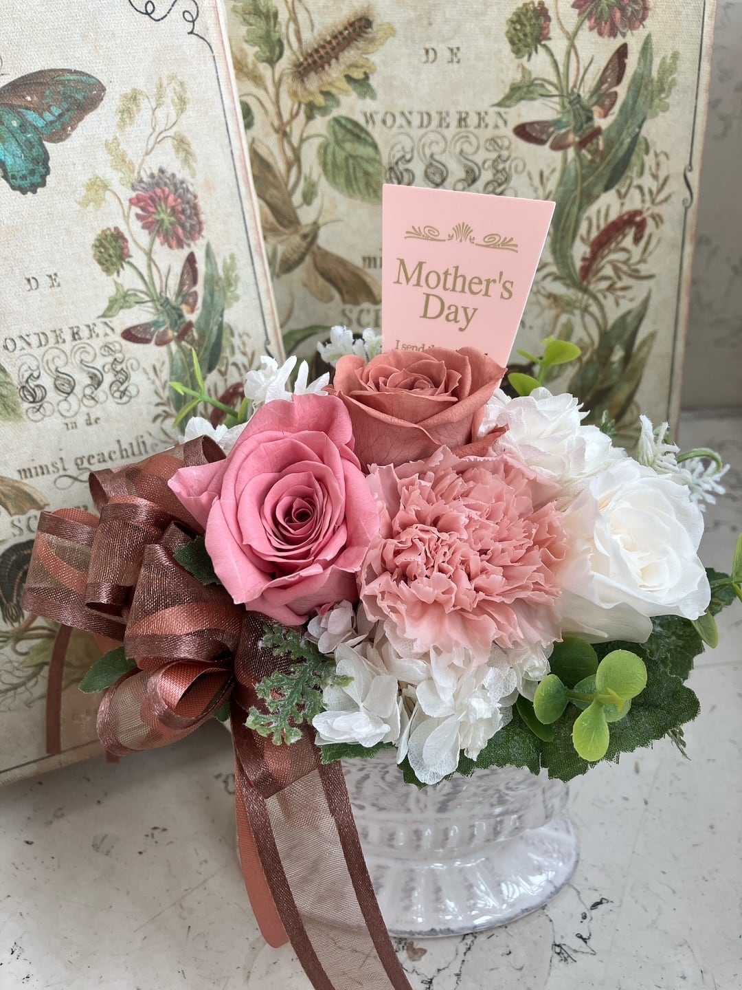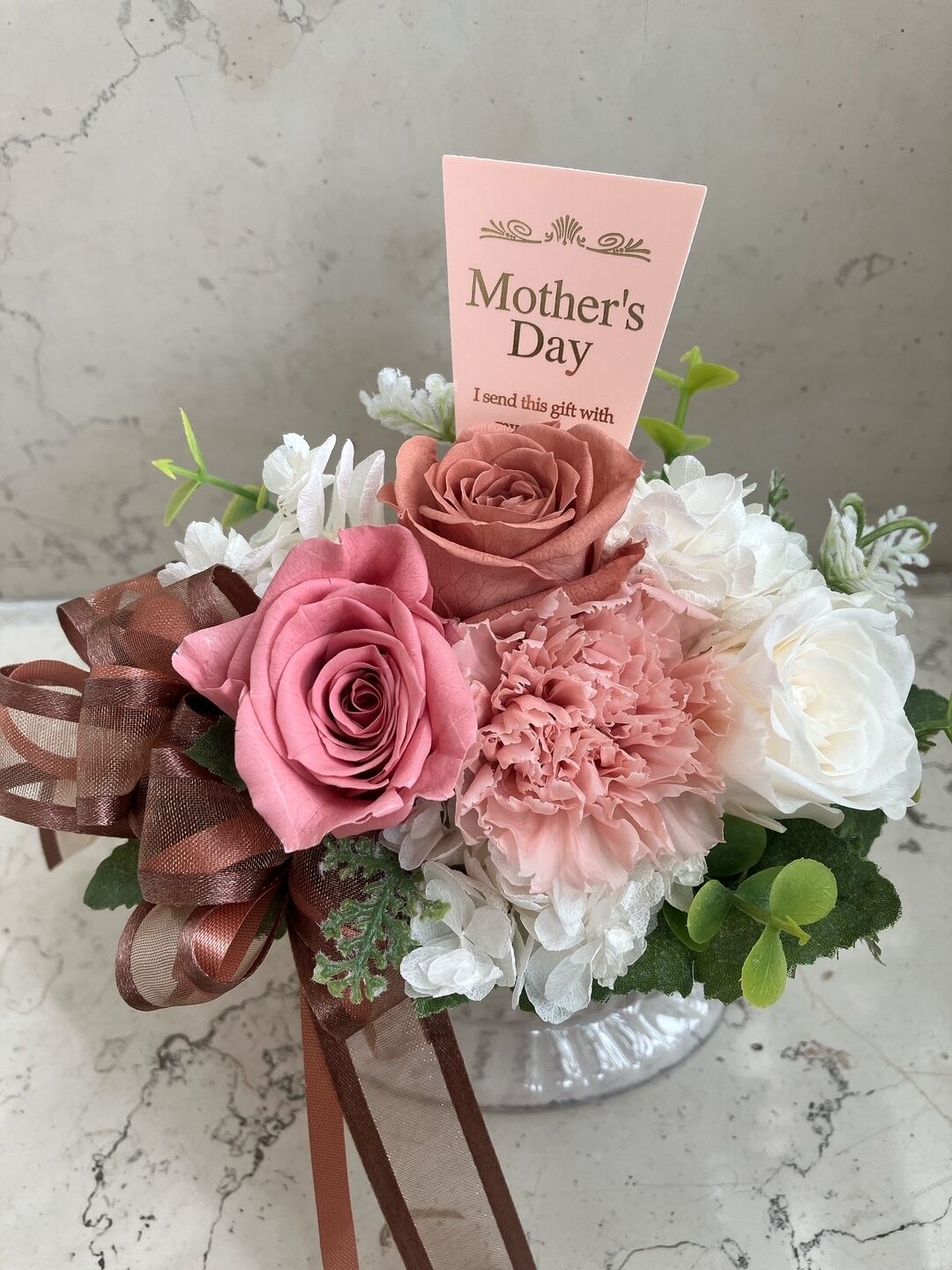 Mother's Day Gift プリザーブドフラワーMidi「Pink×White」