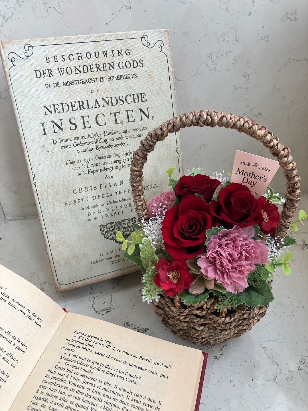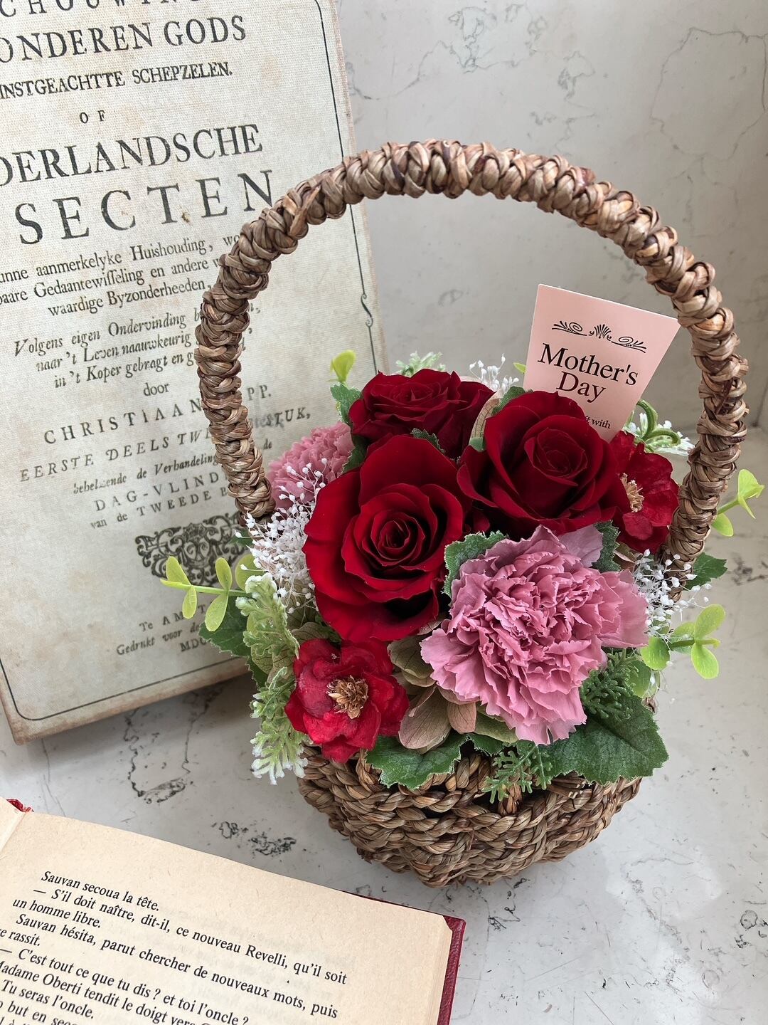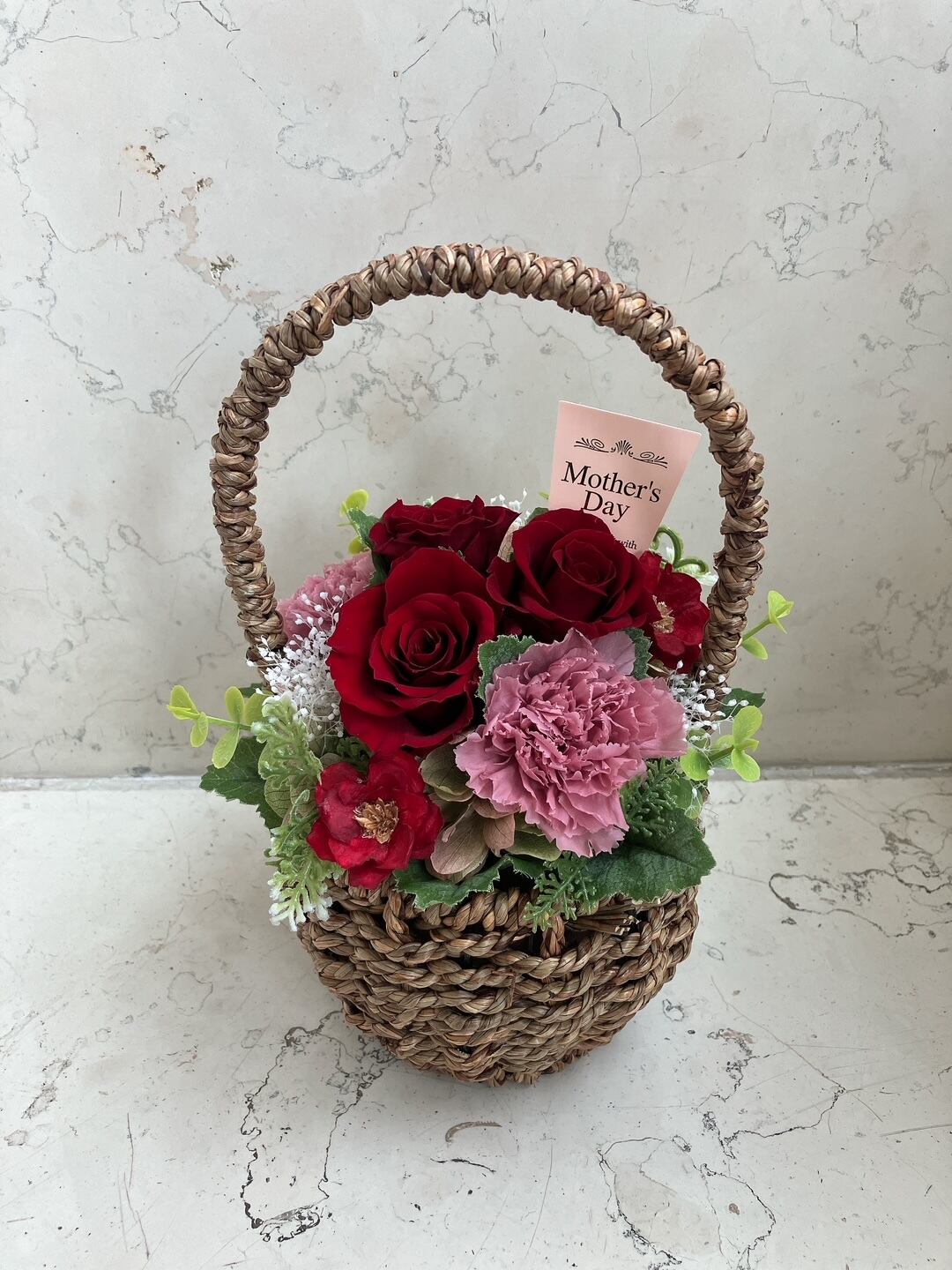 Mother's Day Gift プリザーブドフラワー Basket arrange「Red」